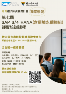 iv. 12/30(二)您會收到Email→主旨:【課程行前通知】115年寒假SAP S/4 HANA (含環境永續模組)師資培訓課程